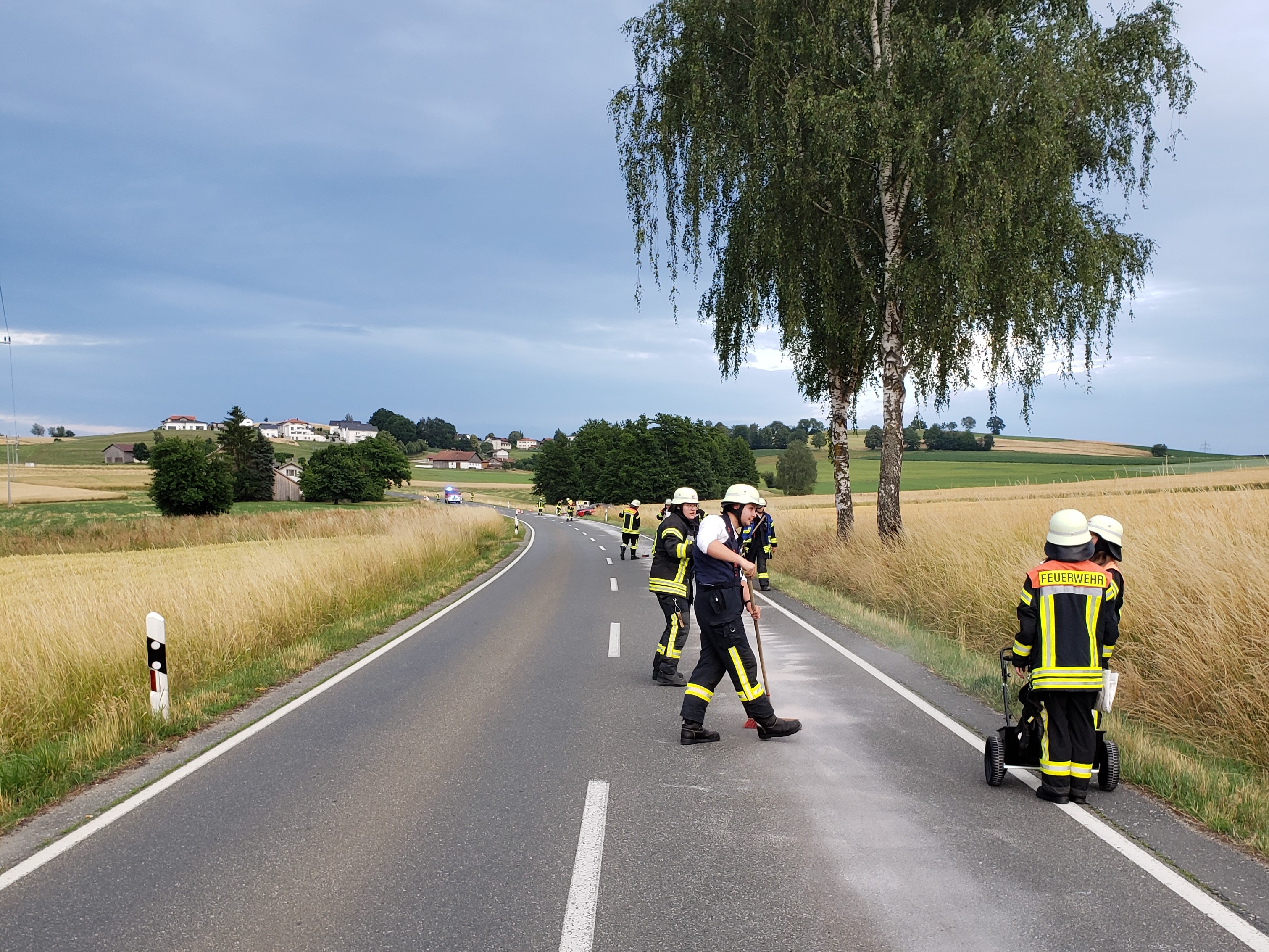 Die FF Zandt wird am 01.07.2023 um 19:43 Uhr zu einer Ölspur auf die Kreisstraße Cham 2 zwischen Schachendorf und Zandt alarmiert. Von der Wache Zandt rücken daraufhin FL Zandt 43/1, FL Zandt 11/1 und FL Zandt 56/1 aus. Beim Eintreffen des ersten Fahrzeuges wird ein Pkw an der Abbiegung Nistelberg vorgefunden, welcher offensichtlich einen Motorschaden hatte.