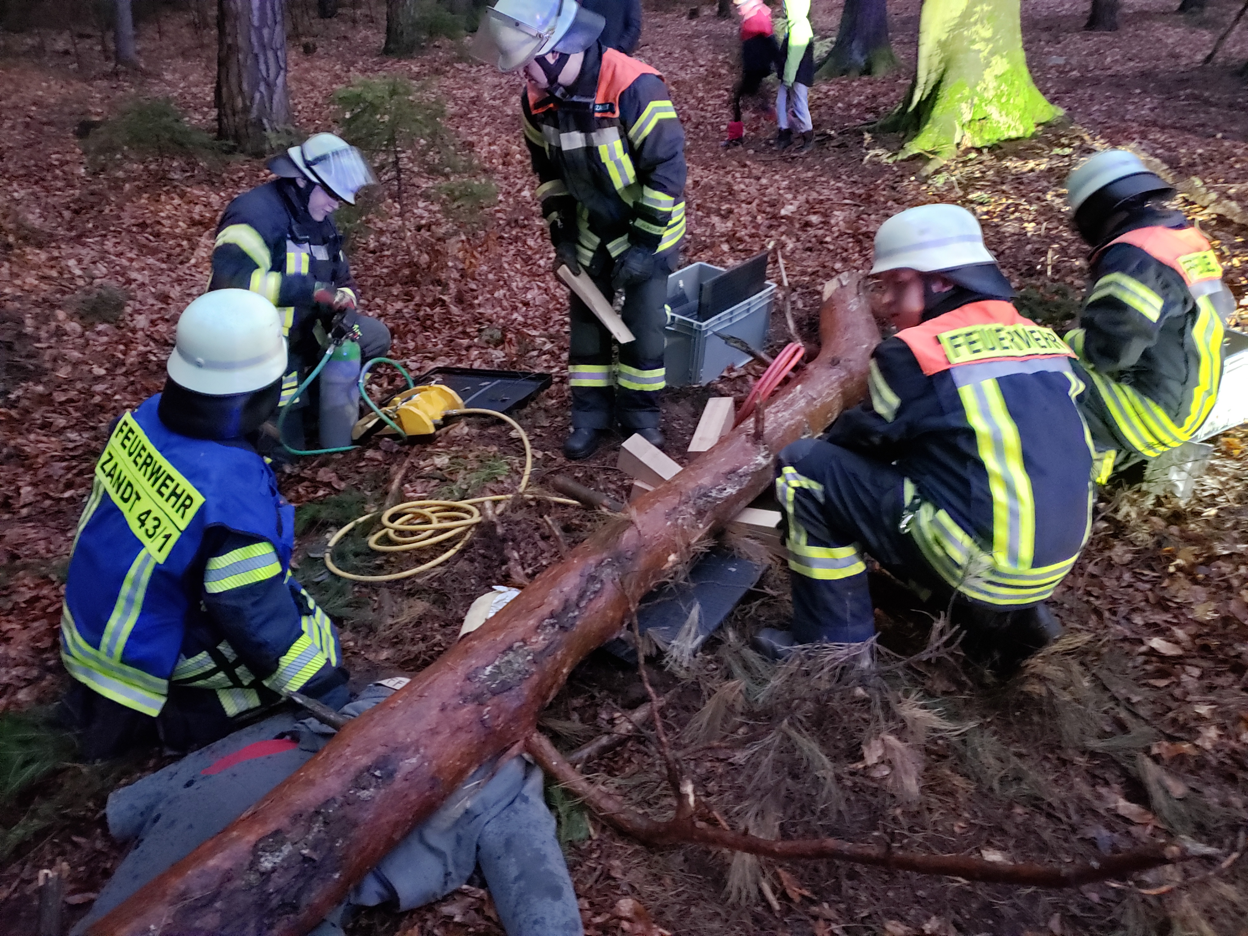 Am Samstag den 16.03.24 fand für die Löschgruppen 5,7 und 9 eine Gruppenübung statt. Um 18:00 Uhr wurden FL Zandt 43/1, FL Zandt 21/1 und FL Zandt 11/1 zu einem Waldunfall in Stocka auf Höhe des Waldrettungspunktes 2283 alarmiert.